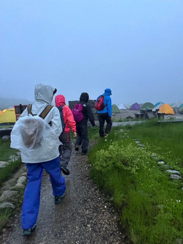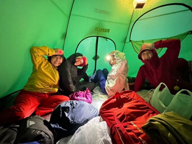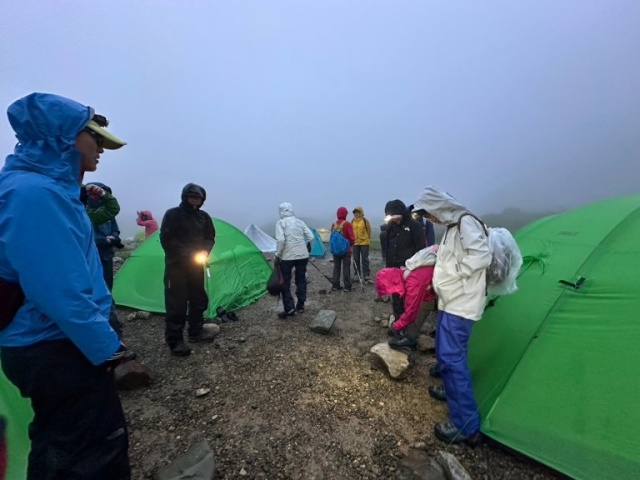 3時起床で朝食、身支度。残念ながらテントを雨がたたいています⤵⤵予定より少し遅らせて5:00出発