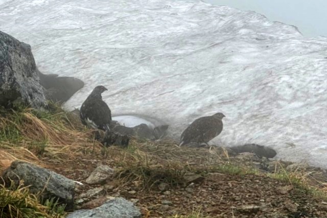 頑張ってるご褒美!雷鳥です。何回かチャンスがあり親子連れにも出会えて超ラッキー