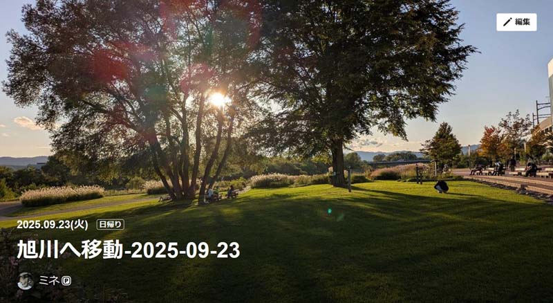 24日旭川通横IN-旭川7:16=(高速あさひかわ号)=8:55ロープウェイ前9:15=姿見駅-裾愛平手前-姿見駅 13:30=40ロープウェイ前15:55=(高速あさひかわ号)=17:30旭川-旭川通横IN(泊)