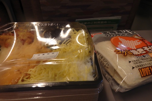 「カムイ」内で食べたかった駅弁の海鮮弁は少々お高ったが満足満足。「キヨスク」で