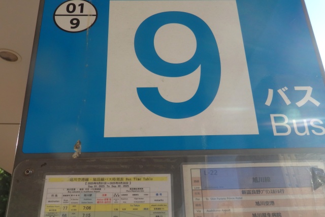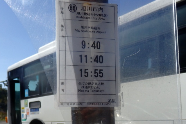平日運転だがピカピカのお天気でBus停には長蛇の列、途中停車の旭川空港乗客は別便を増発