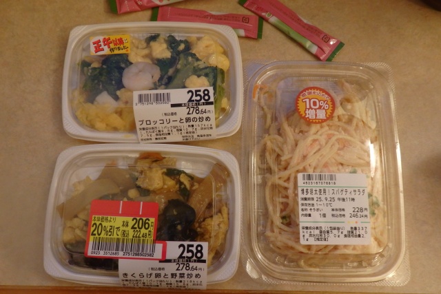 26日セコマお握り・クロワッサン406円 開拓村ラーメン830円 セコマおかず・ワイン・味噌汁1132円