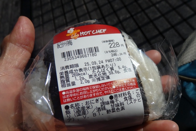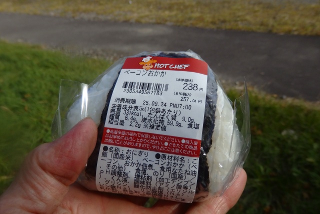 24日セコマお握り・おやつ1549円 熊鈴770円 ライター100円 イオン夕食537円 計2956円