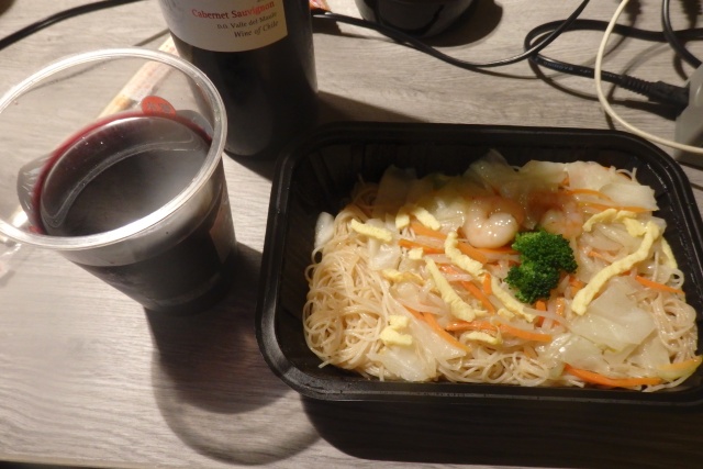 今日からは氷がお腹チャポチャポで赤ワインにします・・・ビーフンで