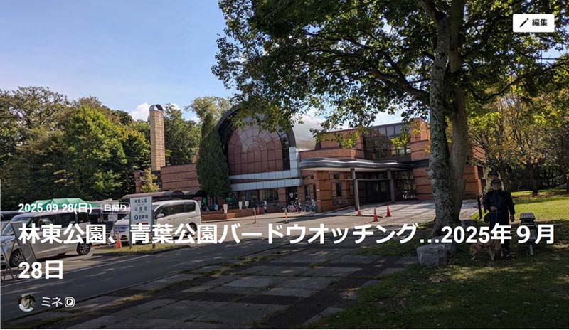 千歳桂病院前・BirdWatchingCaffe・千歳桂病院前13:09=13:20林東公園入口-林東公園-青葉公園・ 図書館前16:24=16:33もりもと本店Bus停・千歳第一Hotel(泊)