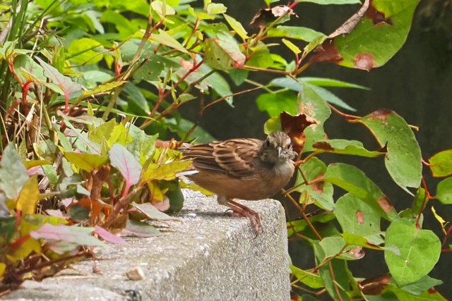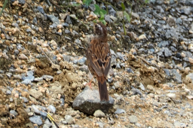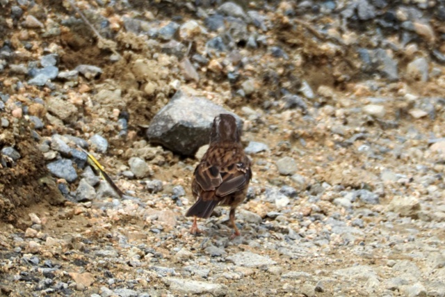 いつもは何かいてパァ~と飛び立つが、数匹残ったのはホオジロだった