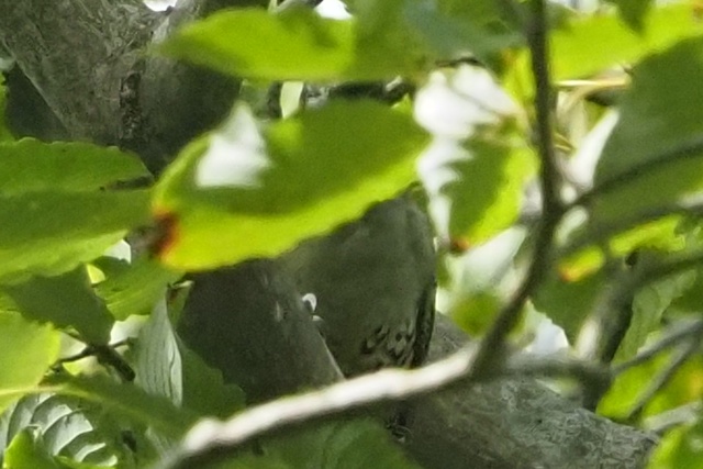 目を凝らすとコゲラで、予想外で遠いのに良く撮れています・・・香りの路は