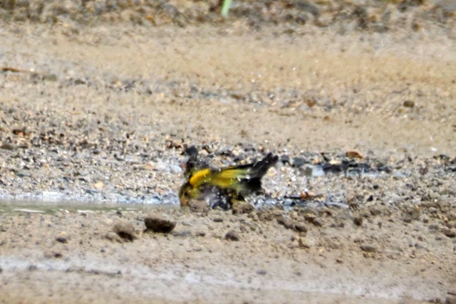 途中も今日も何も出ず、工事現場のカワラヒワの拠点にソロ~近づくと・・・