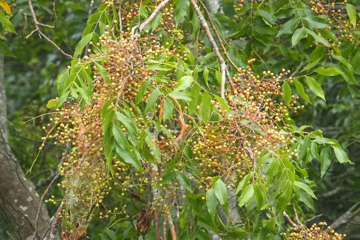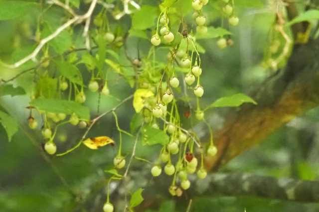 ヤマガラが好むエゴノキの実ですが、まだ青く彼たちは来てません(カヤの実も大好物)