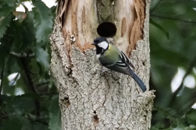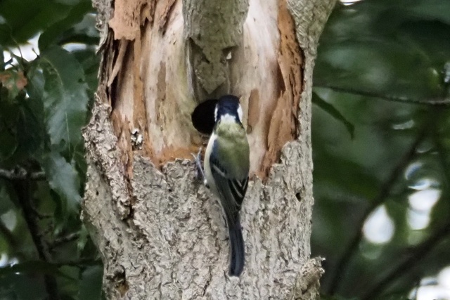 裏の周遊路に廻ると、巣穴らしき場所にシジュウカラがいます
