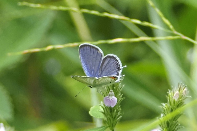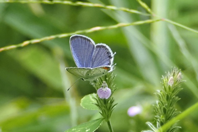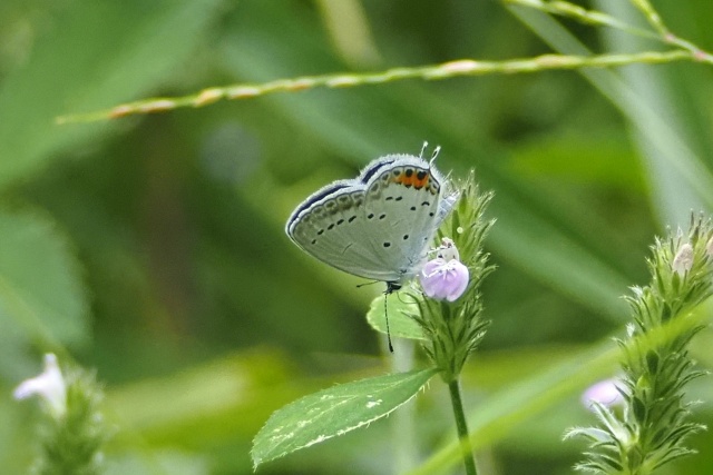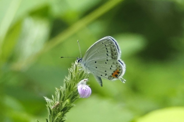ここでしか遊べないキツネの孫現場ではツバメシジミ