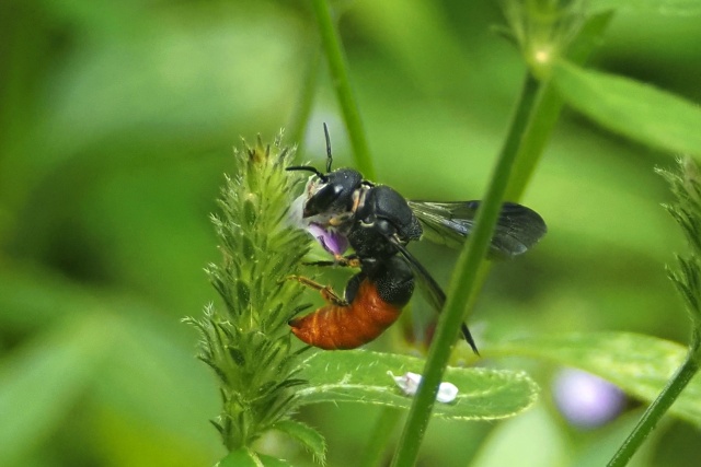 今日は狙い通りアカハラ(アカハラヤドリハキリバチ)