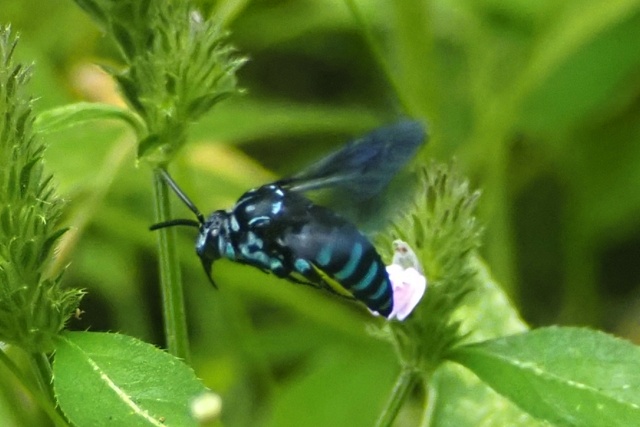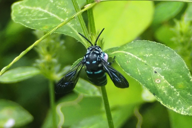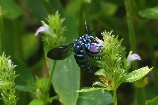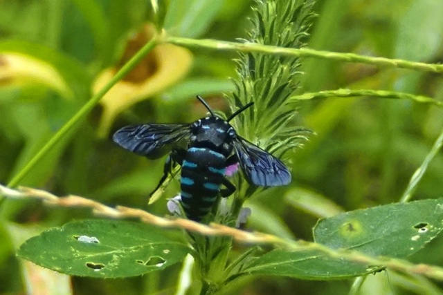 おっと待っていたルリモンハナバチ(幸せを呼ぶ青い蜂)も出てきました