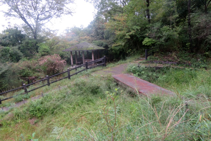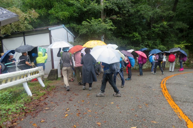 やはり降り出した雨で、尼崎ハイキング会が使う東屋を半分お借りして自然保護部会と