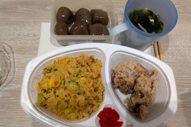 前日のOrderLunchはチャーハン&鶏カラで初めてJustな量で+蒟蒻玉・味噌玉を持参