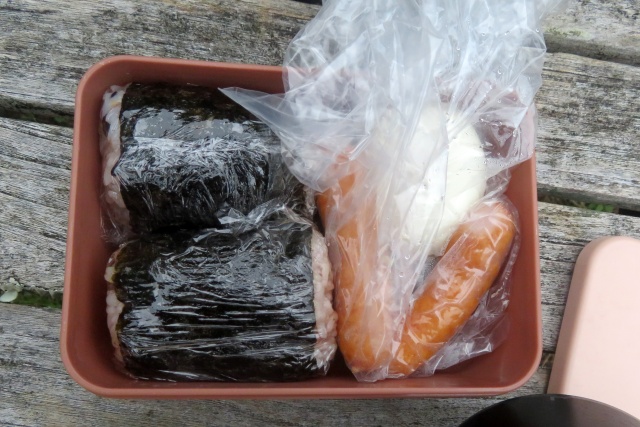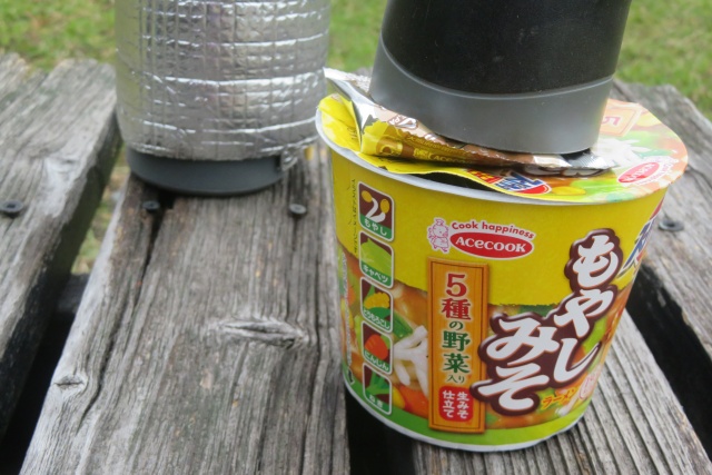 展望広場で🍙ちょこっと&味噌玉にお湯注ぐ・・・ここは「野鳥の森」だが