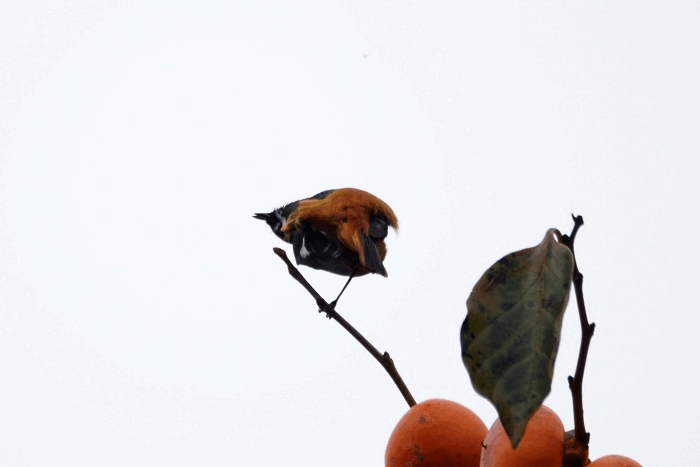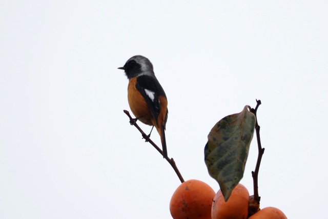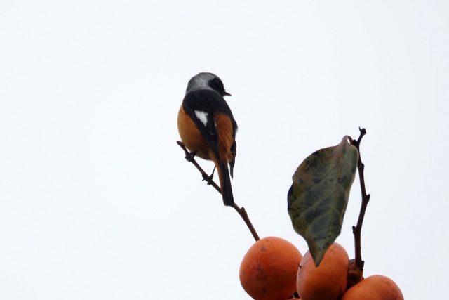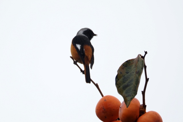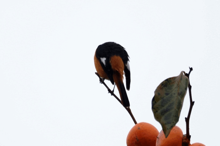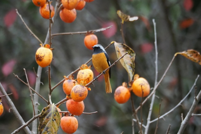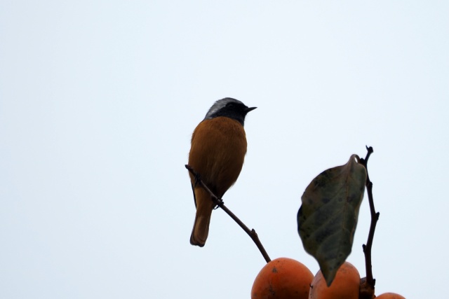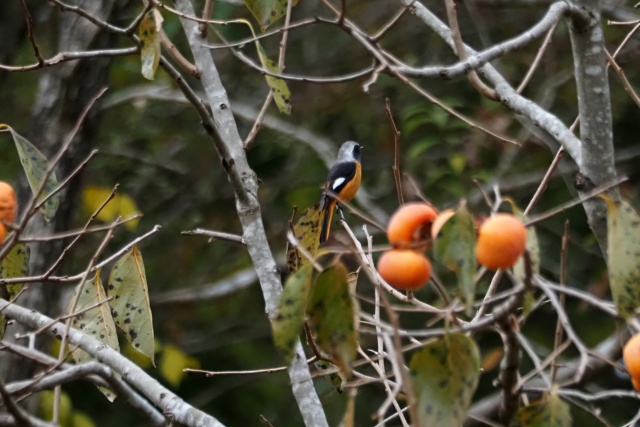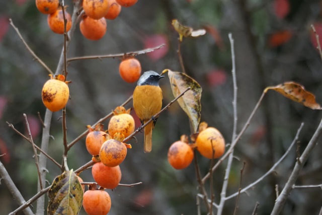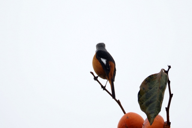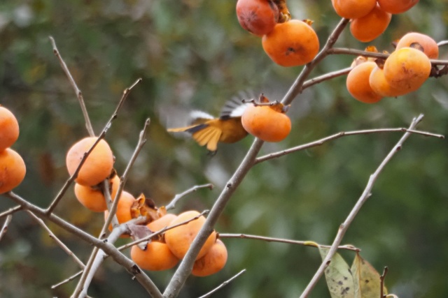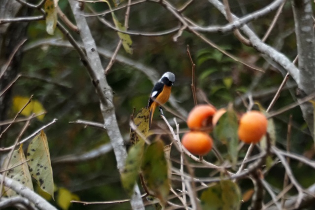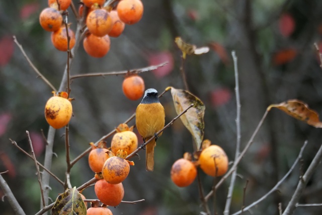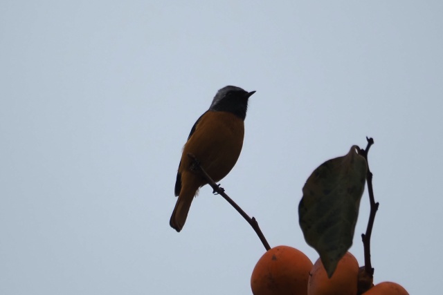 ジョウビタキ雄は違う柿の木に止まっていた