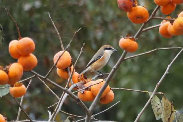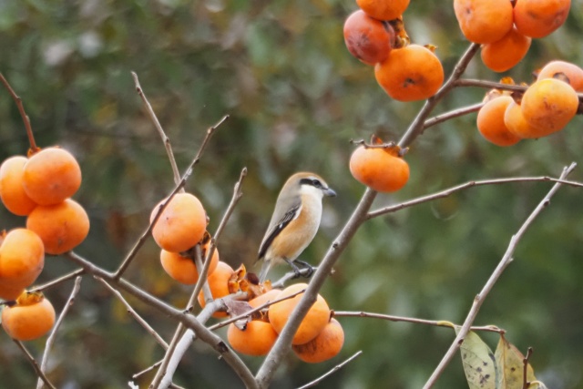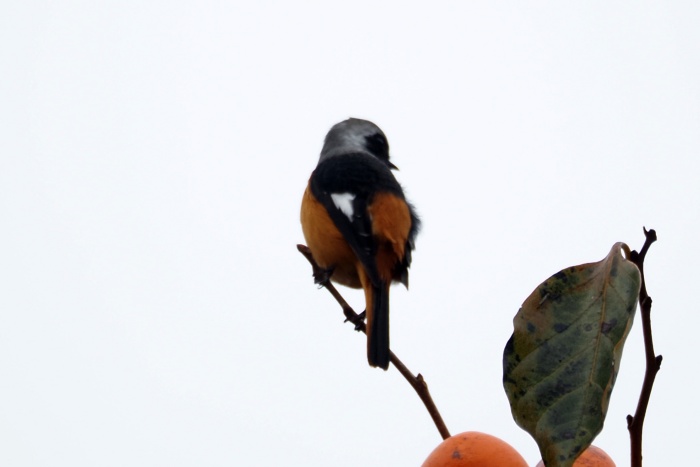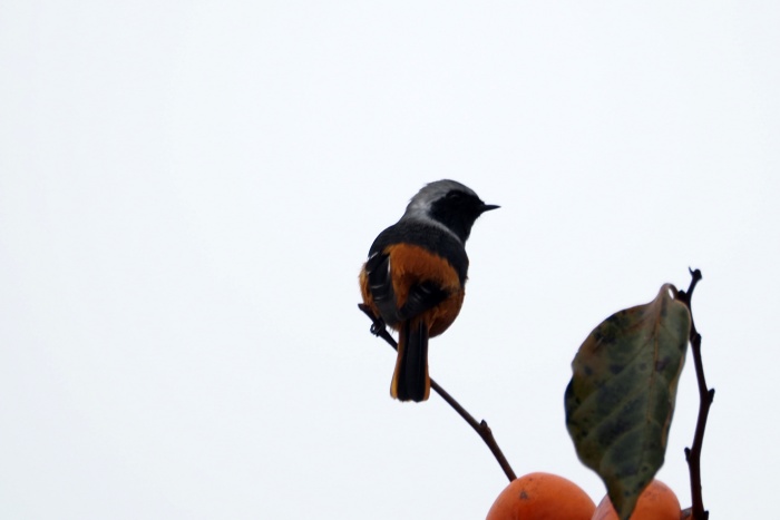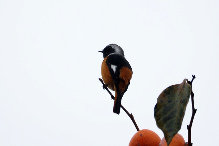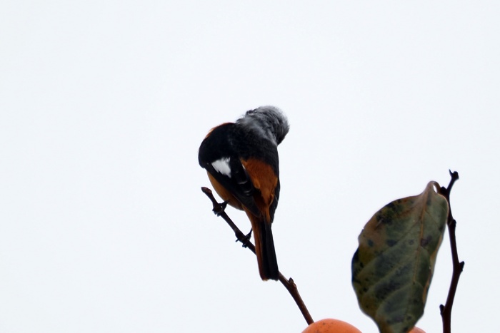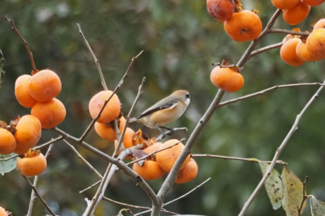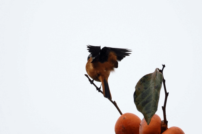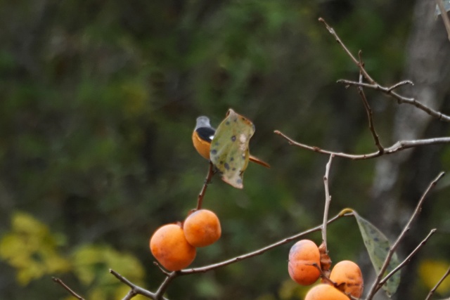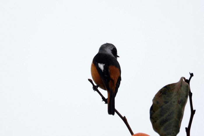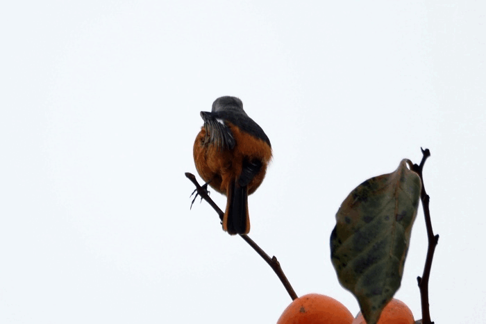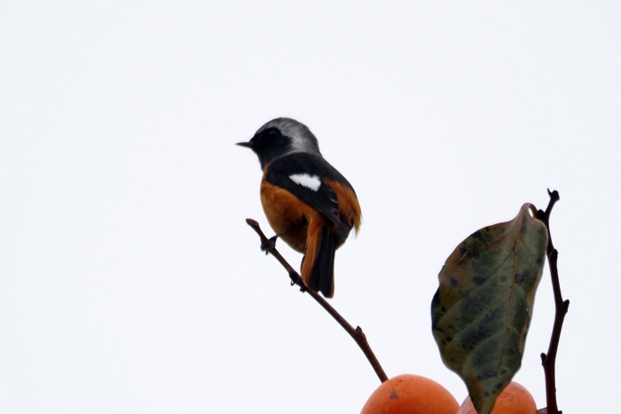 ジョウビタキ雄は違う柿の木に止まっていた