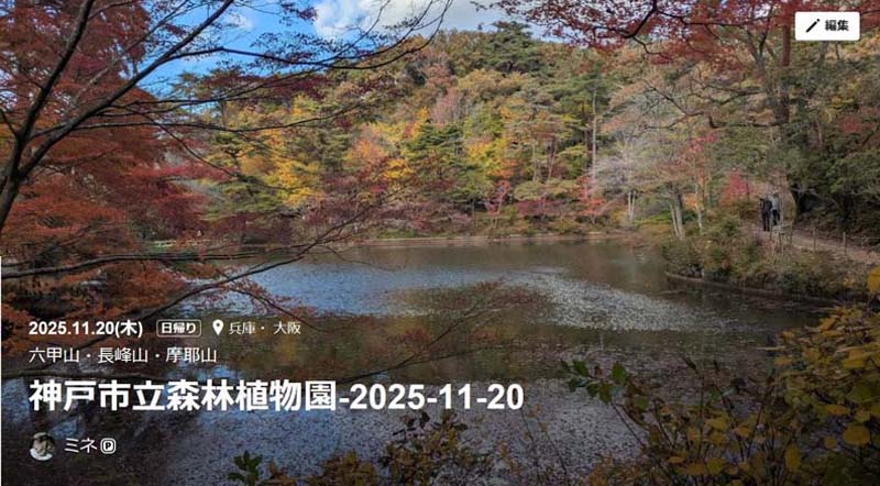 武庫之荘8:01=8:04西北=8:35新開地41=8:58北鈴蘭台9:05=9:16神戸市立森林植物園15:20=15:33北鈴蘭台15:48=16:06新開地13=16:35西北38=16:41武庫之荘