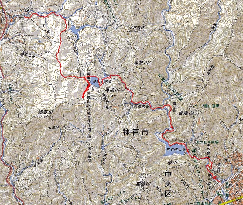 武庫之荘8:18=8:21西北=8:45神戸三宮・三宮54=9:05谷上駅13=9:36二軒茶屋-10:02再度公園入口-10:50ルリビタキPoint-市ケ原-16:28布引の滝-新神戸17:04=17:04三宮・神戸三宮17:10=17:26西北29=17:33武庫之荘