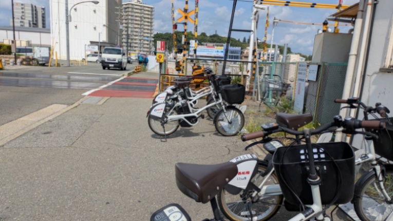 山陽手柄駅前には大きな駐車場がど~んとあり、なにやら出来るんかな?・・・踏切渡ります(スマホ映像)
