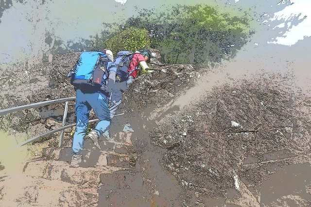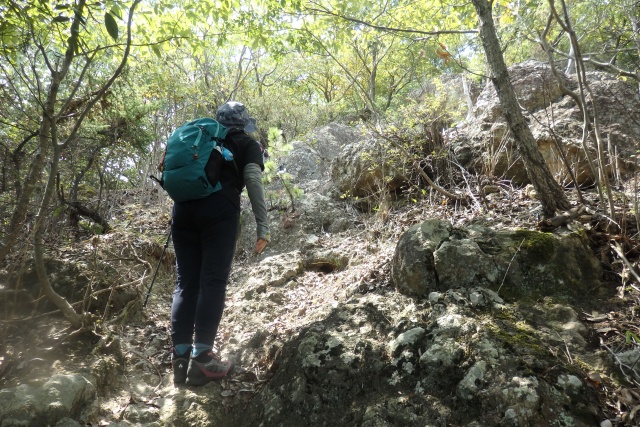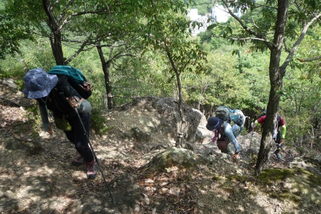 最初は陽射しガンガンで、お昼過ぎの登りには堪え、しんど顔だ