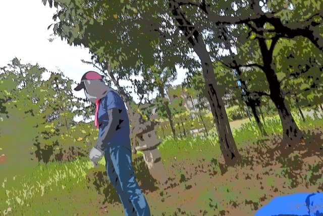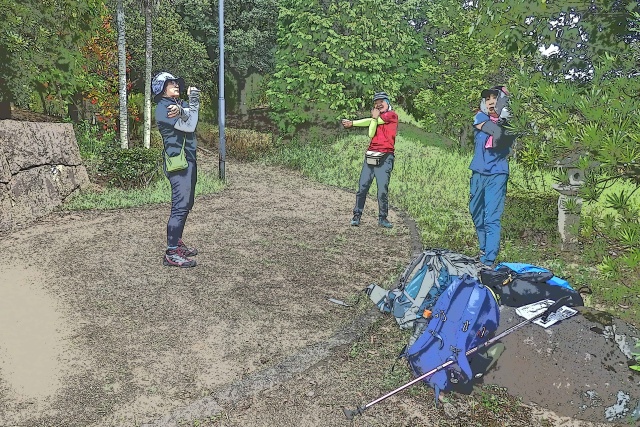 山に登る前に木陰で休憩・・・いい場所見つけたねOsazakiさん