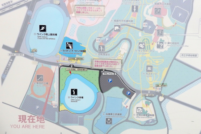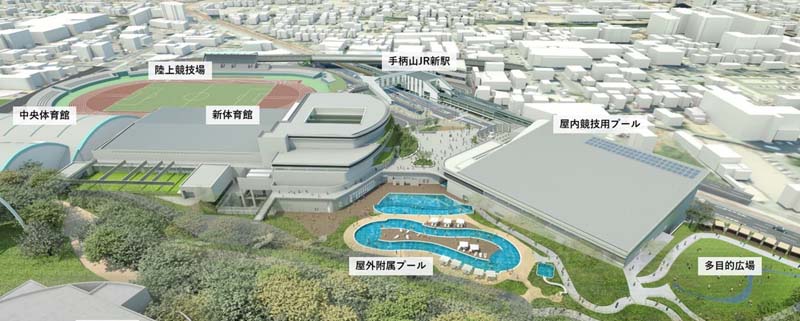 手柄山温室植物園・平和公園・陸上競技場などが終結した場所で、近々には総合施設が