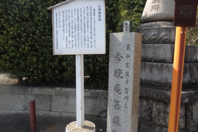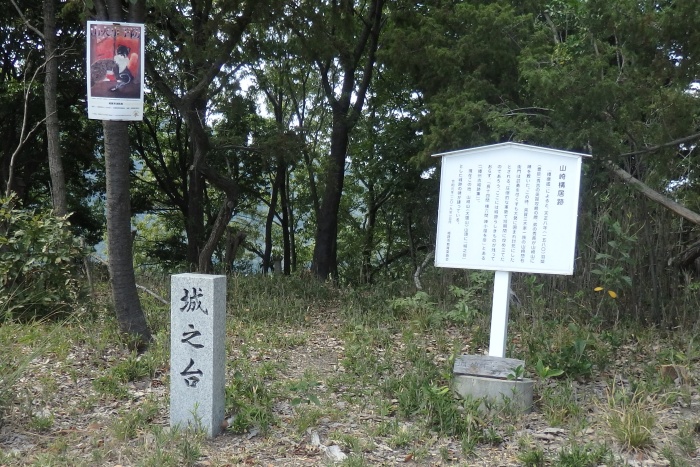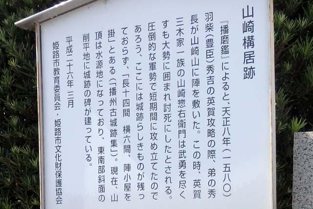 看板には「羽柴(豊臣)秀吉が英賀攻略の際・弟の秀長がこの山崎山に陣を敷いた」と
