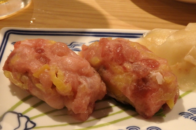 おはぎじゃないよ、餡子は入ってなく赤身とトロが混じって餡子に似せたお寿司