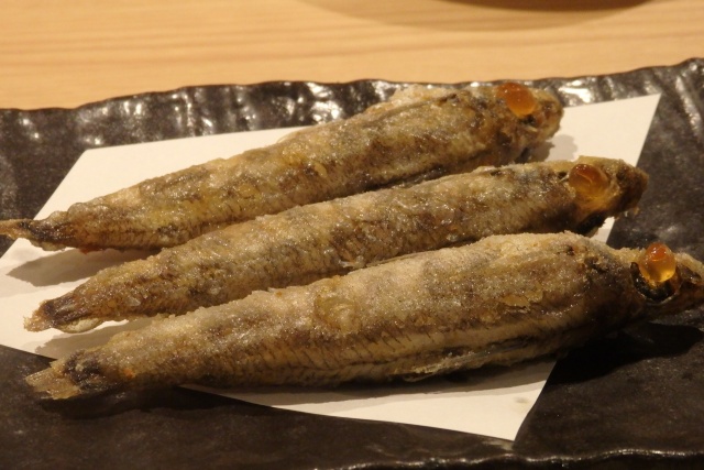 国産メヒカリの唐揚げ(目がイクラで光ってます)