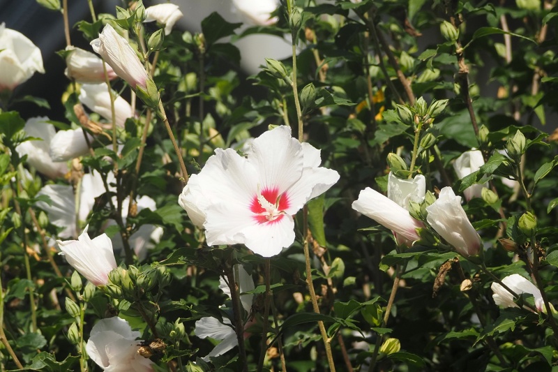 時期的にはコスモスですが、猛暑でまだまだムクゲが納得できる気候ですね