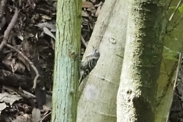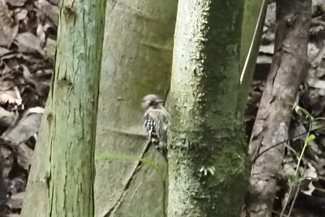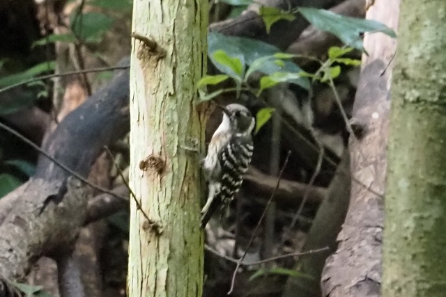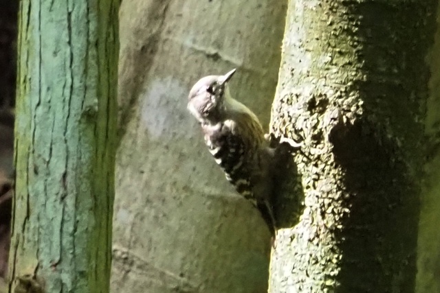 丸山谷渡る時、何かの気配で、対岸の樹の中に小さくコゲラ