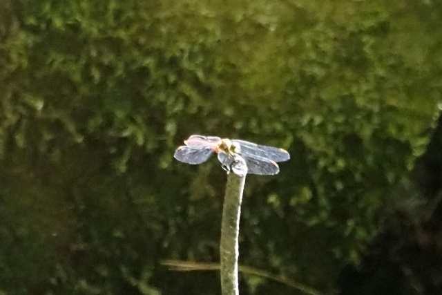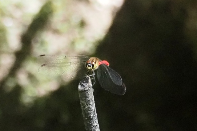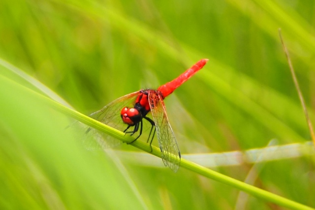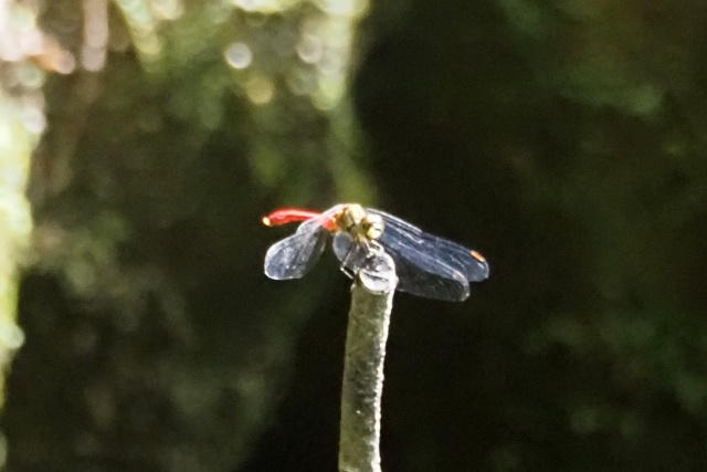 小さすぎて上手く撮れず、近づいて、何か小さくて赤いくひょっとしてハッチョウトンボ