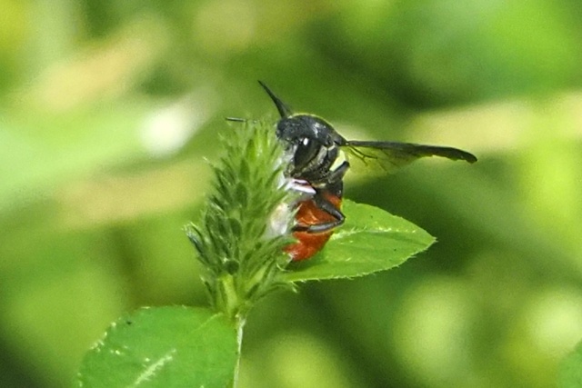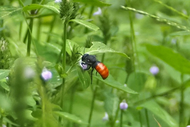 また新しい出会いの「アカハラ」正式名は「アカハラヤドリハキリバチ」舌嚙みそう