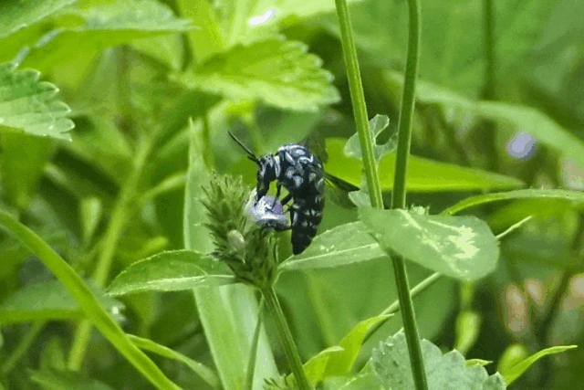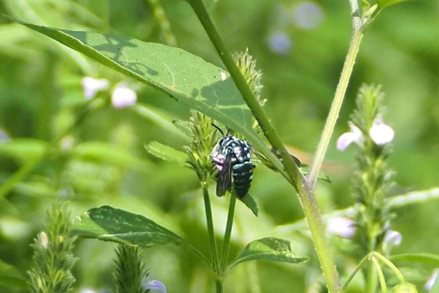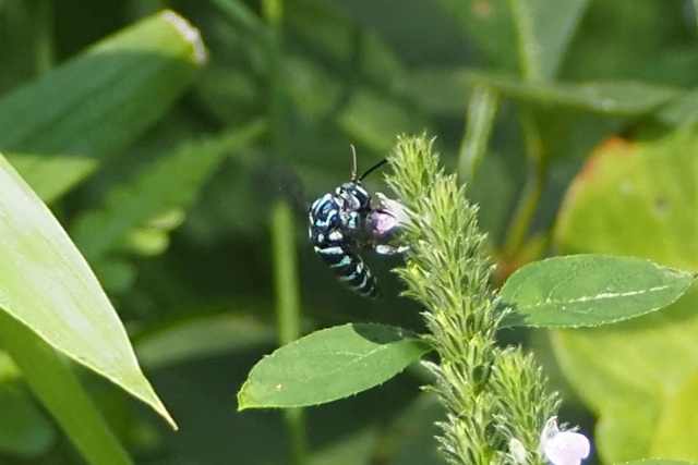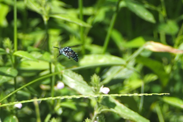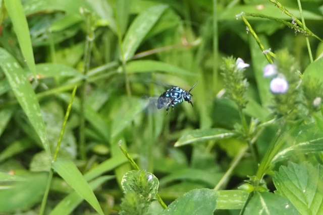 藪で暗く、ぐちゃぐちゃの中で撮るには至難の業でやっとルリモンハナバチ
