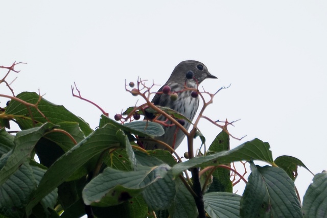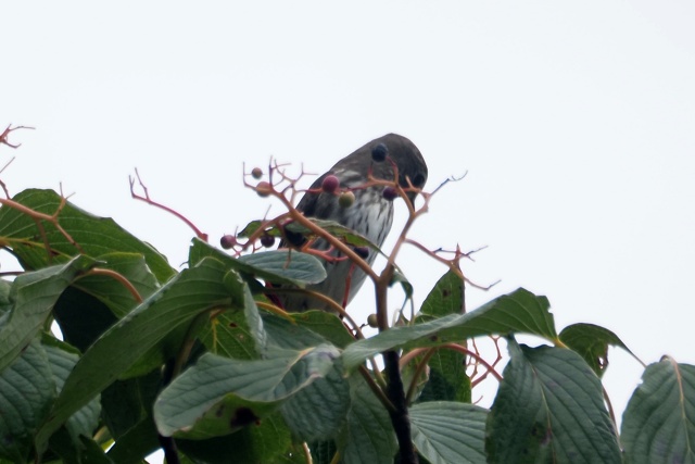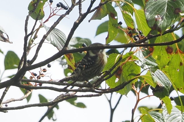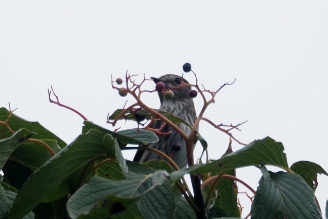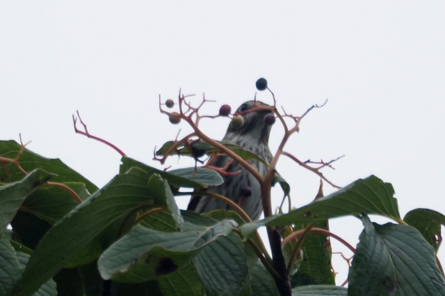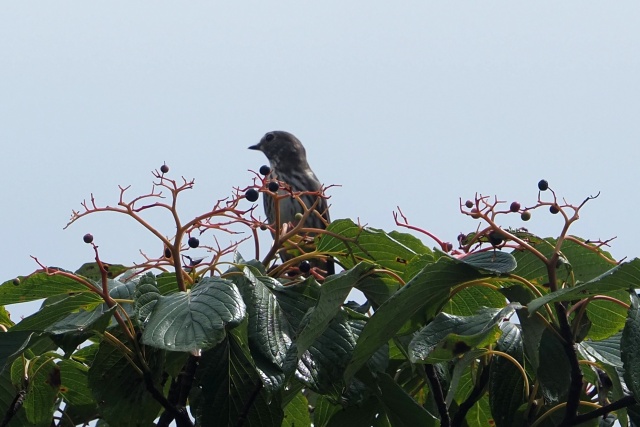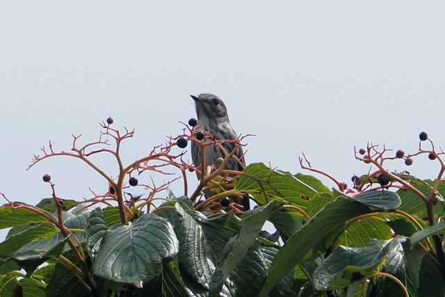 下のミズキ樹のかなり遠い場所でエゾビタキいたが、嘴は葉隠れ・・・ここも出てない