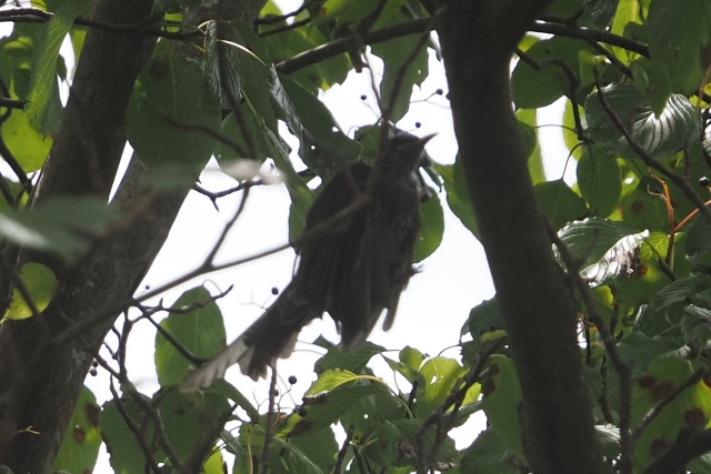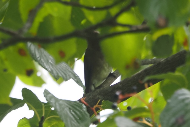 直ぐに雨は止み、クマノミズキの中でコサメビタキかオオルリ雌か、頭は見えず⤵