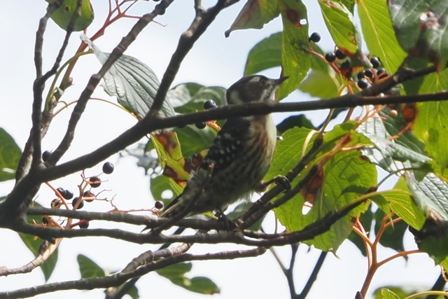 おっ奥にコゲラだが、目が枝隠れで残念!!