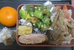 火曜弁当は新メニュー参加でオクラとアボカドのおかか麺つゆ和えで、火を使わず作り置き簡単ですね