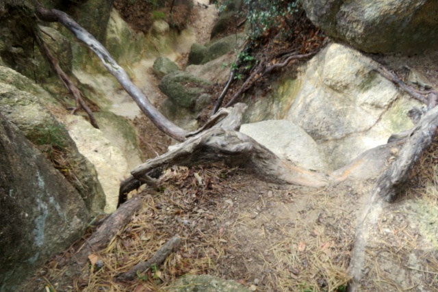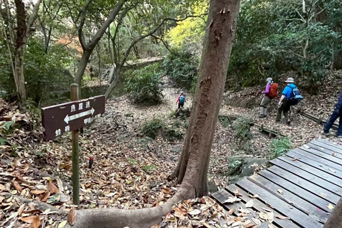 魚屋路、蛙岩分岐より上にある分岐を甲南山手方向へ