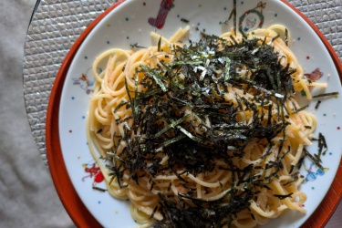 朝食は久しぶりの作り置きの冷凍ピザトースト&オニオンスープ。直ぐに昼食用に明太ソース&バターを出す