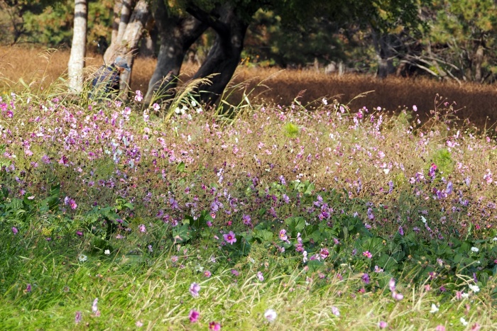 やっと髭の渡しのコスモス園で降りられた・・・まだコスモスの色だけが出てる