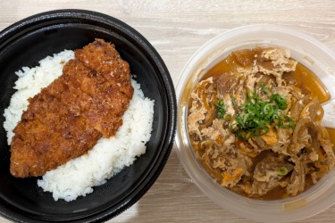 昼食はOrderLunchはカツ丼、Rice半分と豚カツ4切れは大盛の為