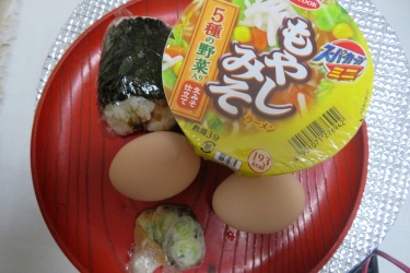 Boiled egg1個は保険で味噌玉も残るかな・・・残ったら明日のLunch行きかな
