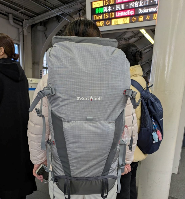 仕事帰りの阪急三宮駅ホームで前列の女性が値札付けたままのザックシンプルで気になる