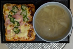 18日朝食ラーメン 19日朝食ピザトーストオニオンスープ・夕食