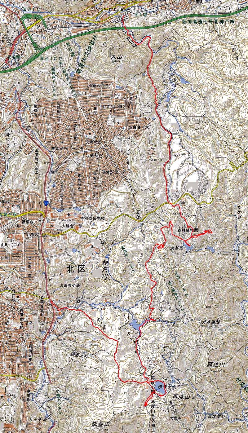 武庫之荘8:18=8:21西北=8:45阪急神戸三宮・地下鉄三宮49=8:59谷上9:13=9:35二軒茶屋-Bus停9:38-10:29再度公園広場-仙人谷入口11:52-12:18休憩30-12:48植物園西門-植物園中央口14:50-15:49山田道登山口-16:06食彩館・谷上16:43=16:53地下鉄三宮・阪急神戸三宮17:00=17:16西北19=17:23武庫之荘