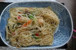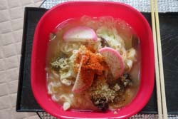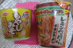 朝予約当日で3時起床で頑張っていたが、間が待てず9時23分で家の待合室にて中間食で冷凍焼きビーフン