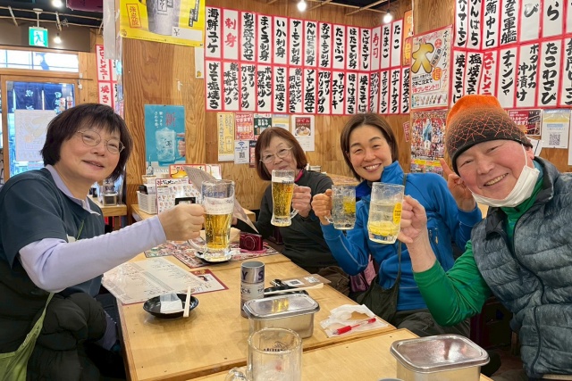 やはり4名は構内の「たなか」前にいました・・・今日は随分と寒いが出発!!